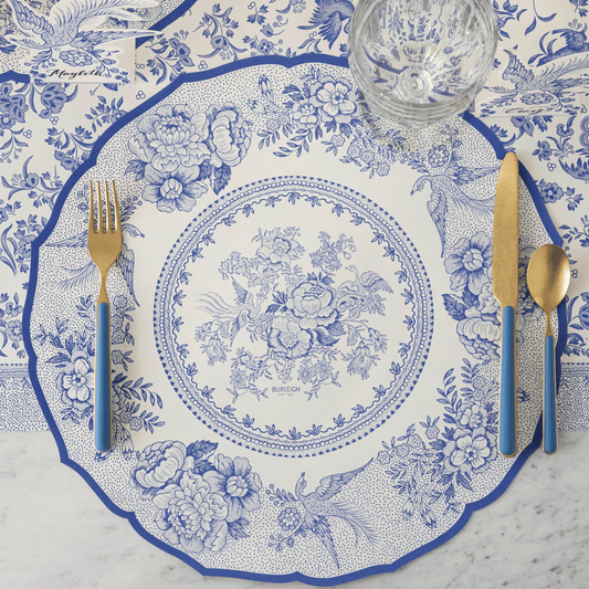 Burleigh x Hester & Cook Blue Regal Peacock Paper Table Runner
