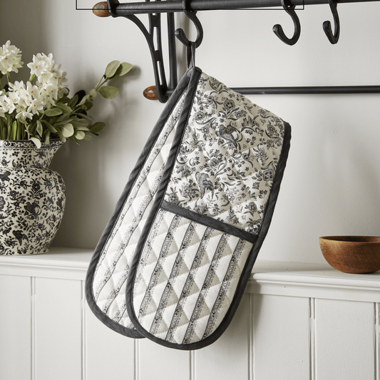 Burleigh x Bedeck of Belfast Charcoal and White Regal Peacock Double Oven Glove