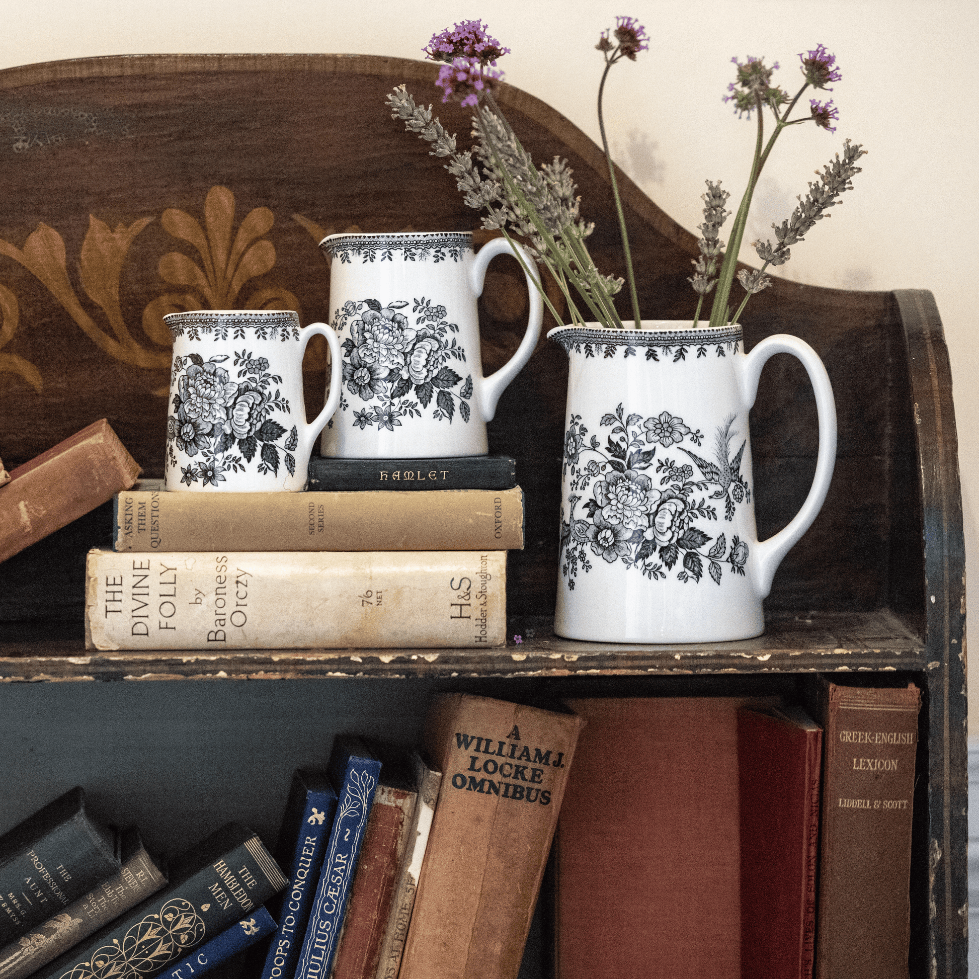 The Black & White Asiatic Pheasants Medium Tankard Jug is ideal for milk, water, or other beverages. Holding 568ml, it features Burleigh’s classic monochrome pheasant and floral design, applied using the tissue transfer technique unique to Burleigh. Its timeless elegance and practical use make it a standout example of English tableware craftsmanship.